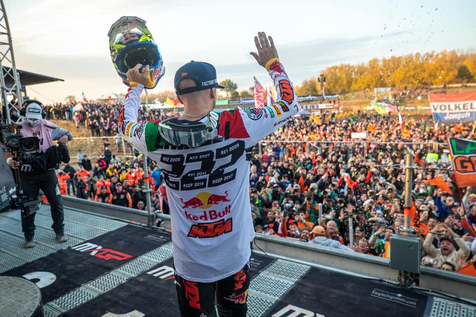 NUMERI STRAORDINARI. Cairoli ha chiuso con numeri e statistiche straordinarie. «Ho sempre detto che i numeri e le statistiche non significano molto per me e lo penso davvero…io vivo il momento e la vittoria è stata solo il frutto del lavoro che ho fatto con passione ogni giorno. Il mio primo titolo nel 2005 nella classe MX2 fu già qualcosa di incredibile, la realizzazione di un sogno per me e per la mia famiglia. Poco prima, a diciannove anni, stavo per smettere, poi la chiamata del team De Carli ha ridato slancio alla mia carriera. Quel giorno di ottobre la mia vita è cambiata e in questi 18 anni ho continuato a lavorare e lottare, vincendo tanto con la stessa squadra: una cosa unica nella storia del nostro sport>.