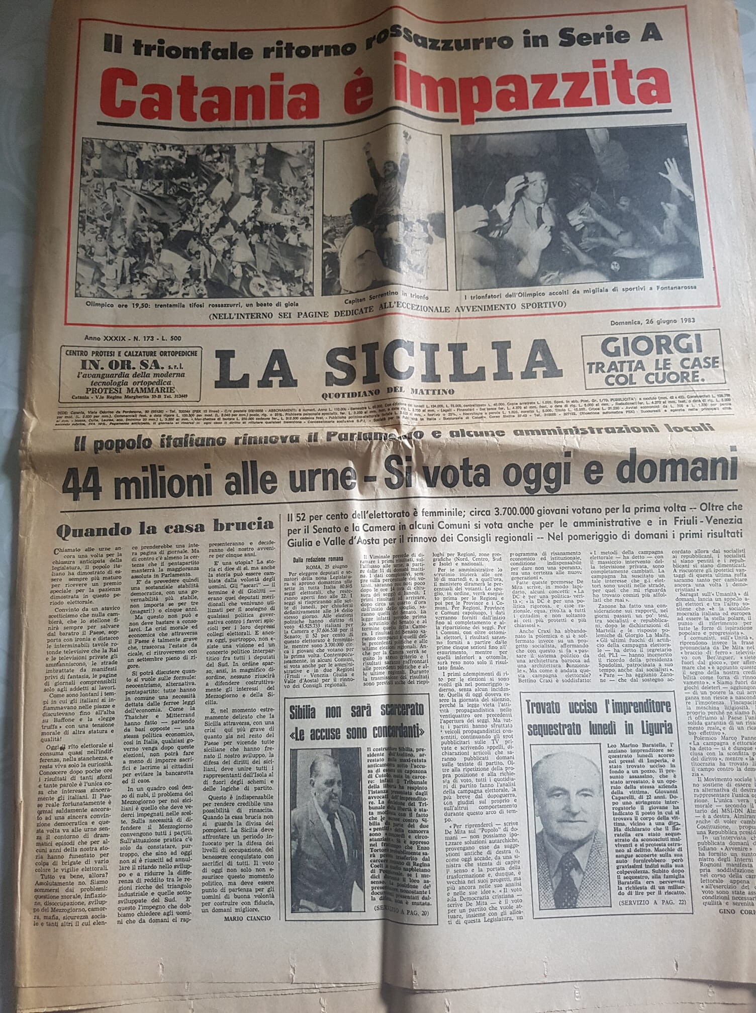 Quei 40 mila catanesi che il 25 giugno 1983 spinsero il Catania in Serie A sono l'espressione di un riscatto sociale, di un senso di appartenenza che ha reso la matricola 11700 immortale nonostante gli ultimi eventi che hanno portato al fallimento del club. Anche chi non ha vissuto il 1983 conosce una filastrocca formata da undici nomi, quelli degli eroi di quella giornata romana: Sorrentino; Ranieri, Mosti, Giovannelli, Chinellato, Mastropasqua, Morra, Mastalli, Cantarutti, Crusco, Crialesi.