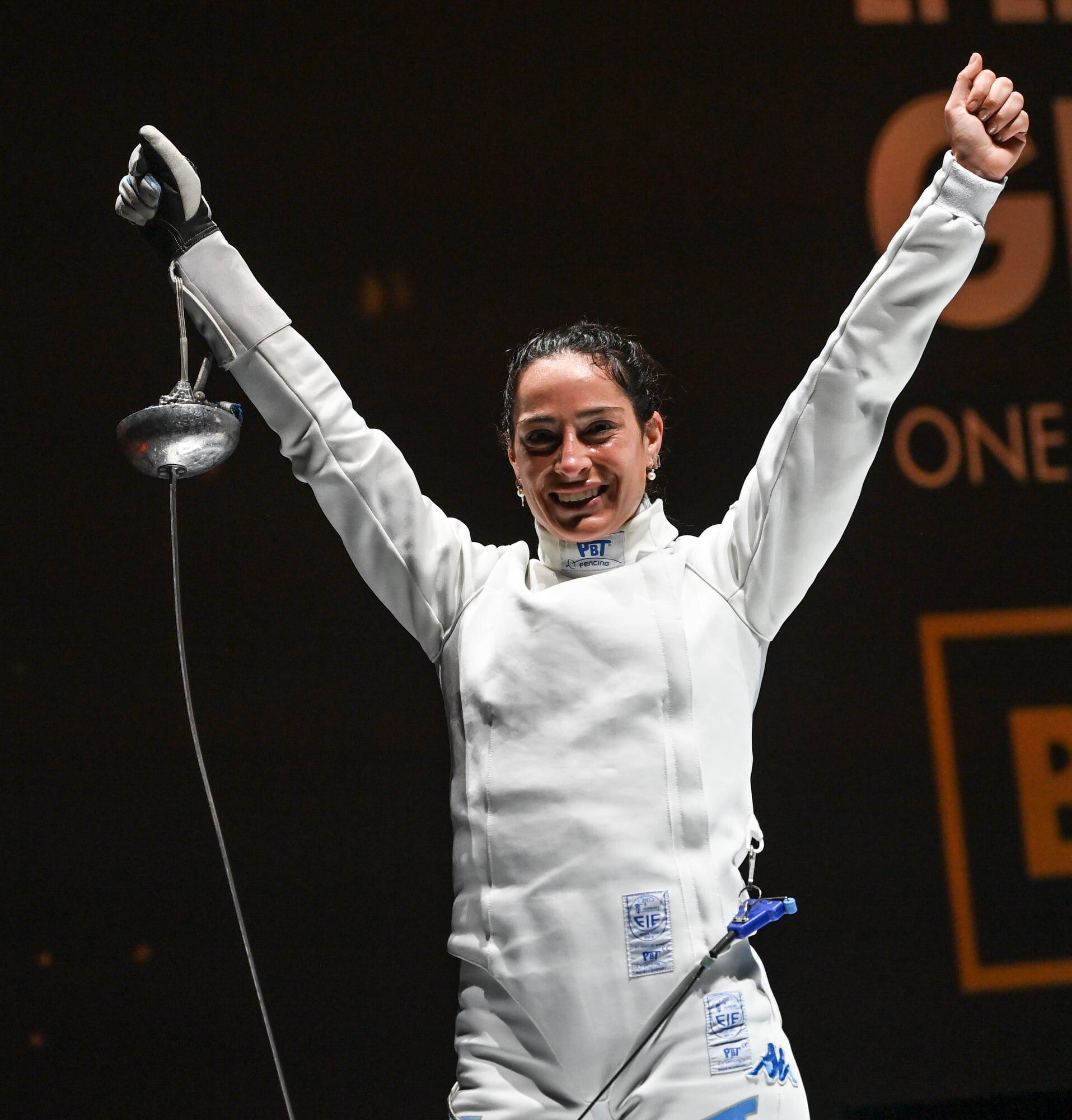Primo successo in Coppa del Mondo per la spadista con una dedica speciale. Grande prova dell'altra etnea, la doppia iridata Rossella Fiamingo