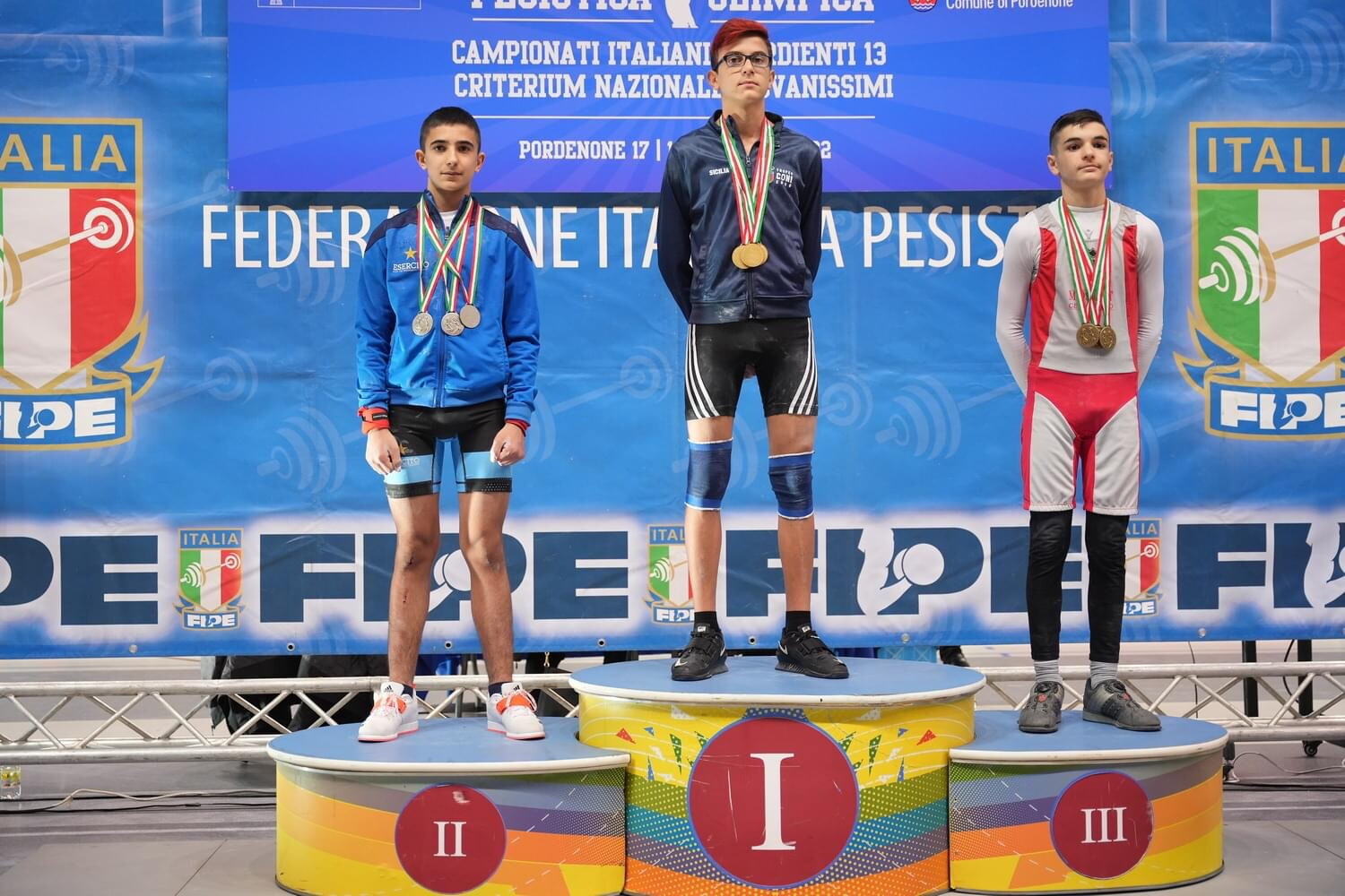 Il PalaCrisafulli di Pordenone ha ospitato le finali nazionali dei tricolori di sollevamento pesi per le categorie esordienti e giovanissimi. La Sicilia ha messo in mostra i suoi talenti e per la gioia del responsabile tecnico, il maestro Maurizio Sardo e del presidente della federpesistica Sicilia salvatore Parla, sono arrivati tre titoli italiani, due bronzi e un sesto posto che confermano la bontà di una scuola che continua a sfornare talenti, oltre a vantare campioni assoluti come il trapanese Nino Pizzolato, bronzo ai Giochi di Tokyo e la palermitana Giulia Miserendino sul podio nelle più importanti competizioni continentali.
