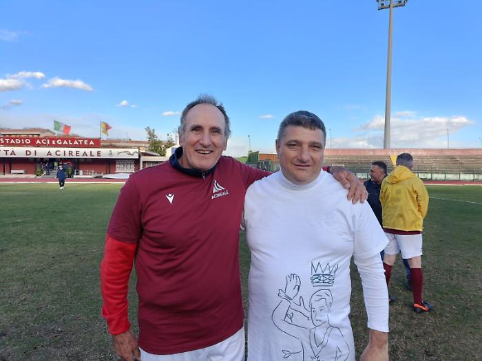 Nel nome di San Sebastiano, compatrono della Città di Acireale, l’amichevole tra vecchie glorie granata e una squadra di devoti, disputata a fini benefici in vista della ricorrenza della festa in onore del Martire, che ricadrà il 20 gennaio. Due gol per parte al termine dei tre tempi regolamentari da 20 minuti ciascuno, poi ai rigori hanno avuto la meglio gli ex calciatori granata, ben disposti in campo dal tecnico Saro Foti; sulla panchina dei devoti, invece, Sebastiano Grasso.