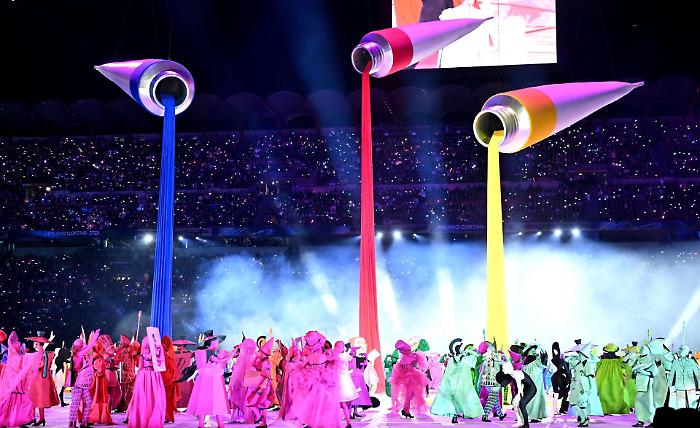 Dietro il colpo d’occhio, una macchina produttiva millimetrica: oltre 1.300 interpreti e volontari da 27 Paesi, 950 addetti tra staff e forza lavoro, 1.400 costumi cuciti su 182 disegni originali, un’orchestra di 500 musicisti, un palinsesto di oltre due ore. Sulla platea globale si affaccia un pubblico televisivo stimato in oltre 2 miliardi di persone collegate. Numeri che rendono l’idea dell’ampiezza del perimetro, ma che soprattutto spiegano la cura con cui ogni segmento sonoro e visivo è stato incastrato nel successivo.