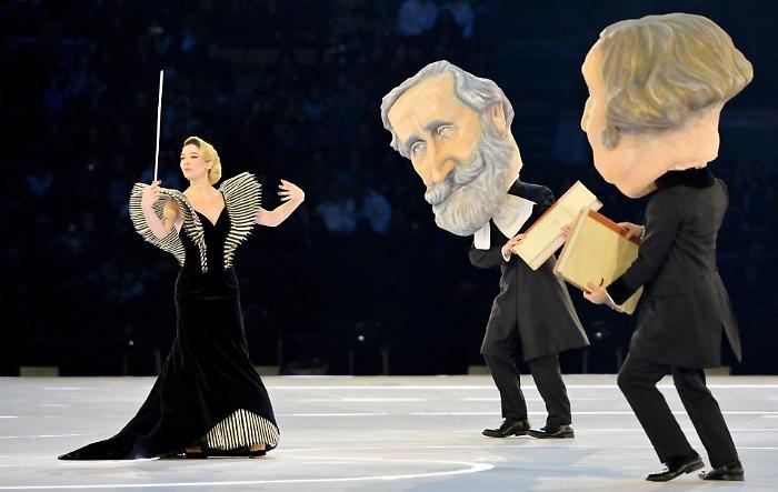 2. Le grandi “teste” dei tre compositoriVerdi, Puccini, Rossini — condotte in scena da una attrice in veste di maestra concertatrice: la musica colta trattata come icona pop.