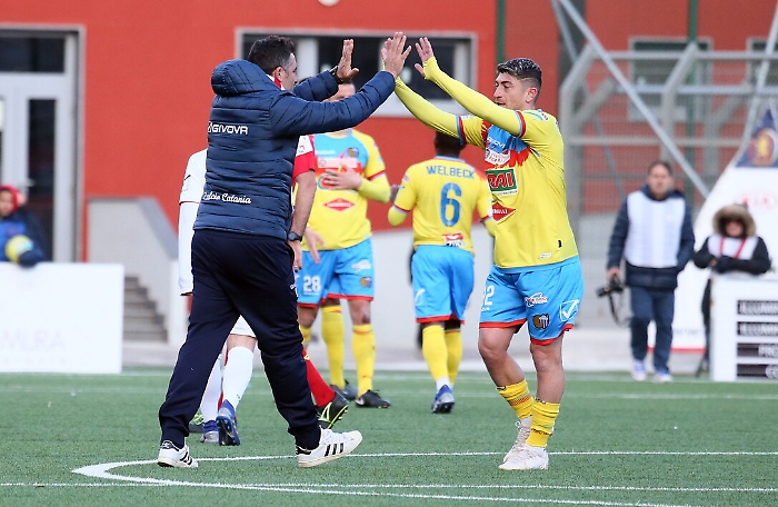 Catania (4-2-3-1): Furlan 6,5; Calapai 6,5, Mbende 6, Silvestri 6,5, Pinto 6,5; Rizzo 6,5, Biagianti 6 (dal 29' s.t. Salandria s.v.); Biondi 6,5 (dal dal 15' s.t. Esposito 6), Capanni 6,5 (dal 15' s.t. Welbeck 6,5), Di Molfetta 6,5 (dal 39' s.t. Mazzarani s.v.); Curcio 7 (dal 15' s.t. Beleck 5,5). A disp.: Martinez, Marchese, Di Grazia, Manneh, Vicente, Barisic. All: Lucarelli 7