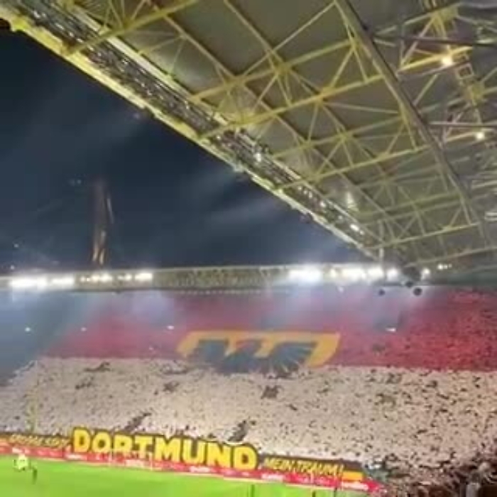 Il Borussia Dortmund batte agevolmente 4 a 0 l'Eintraich Francoforte, ma i vincitori sono anche i suoi tifosi sugli spalti: in curva è apparsa questa coreografia