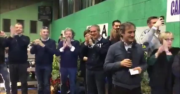 Comizio ad Albino nel Bergamasco per la festa della Lega. Uno speaker annuncia Matteo Salvini, applausi e urla. Ma c'è un problema: la registrazione ha fatto cilecca e lo speaker fa ripetere la scena