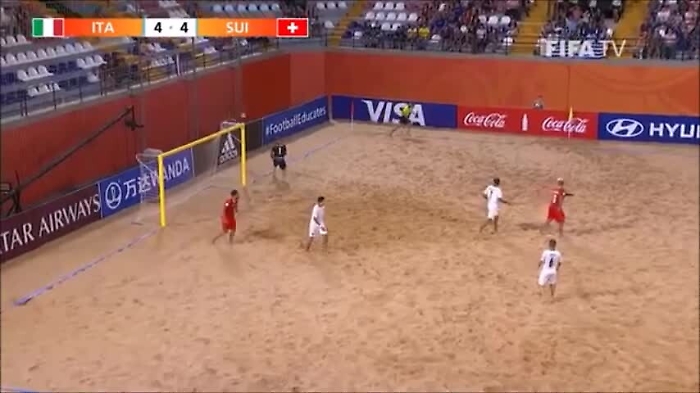 L’Italia rimonta due gol di svantaggio alla Svizzera e la supera al fischio finale vincendo per 5-4. Gli azzurri ripetono l’impresa del 2015 e 2017, entrando nel gruppo delle prime quattro nazionali al Mondo di Beach Soccer.