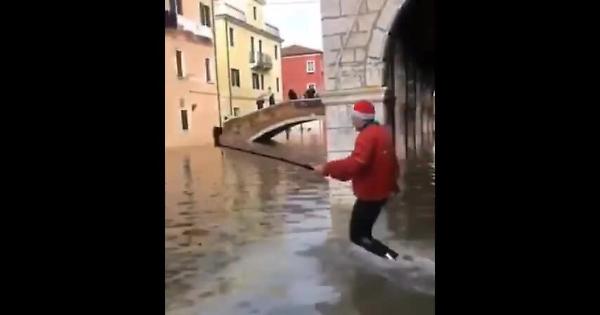 Questo turista con un cappello da Babbo Natale si sta facendo un selfie nella Venezia allagata dei giorni scorsi. Tuttavia, non vede il canale e ci finisce dentro. Nonostante alcuni utenti sul web sostengano che il protagonista abbia simulato l’incidente, il breve video ha totalizzato quasi 70 milioni di clic in pochi giorni