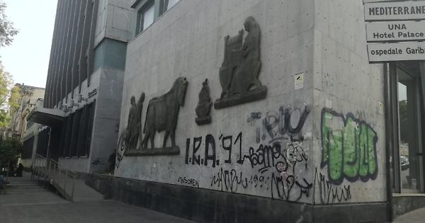 Ci troviamo in Via Sant'Euplio sede Dell'ex Banco di Sicilia. Perché nessuno muove un dito, mentre un'orda di vandali sfregia e deturpa la città? Perché?