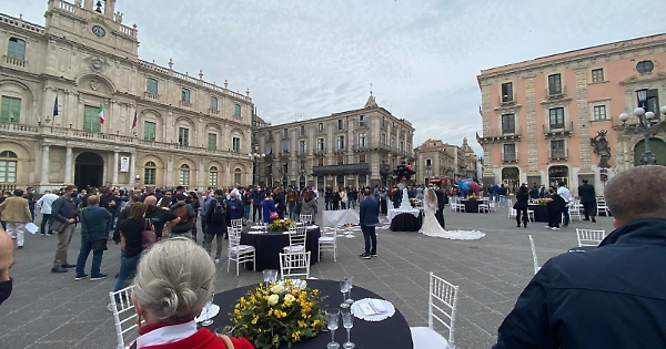 Si è svolta stamani dalle 9 alle 14 in Piazza Università a Catania la manifestazione PROTESTA dei lavoratori e di tutte le associazioni di categorie del Settore " Matrimoni/Eventi e servizi correlati", fortemente penalizzati dalle chiusure e dai blocchi causati dalla pandemia del Covid19.