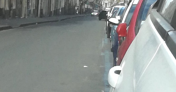Via Garibaldi, segnaletica orizzontale assente, anzi no, le strisce blu si vedono, eccome!