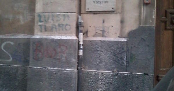 Catania: grondaia a "metà" in via Sacro Cuore