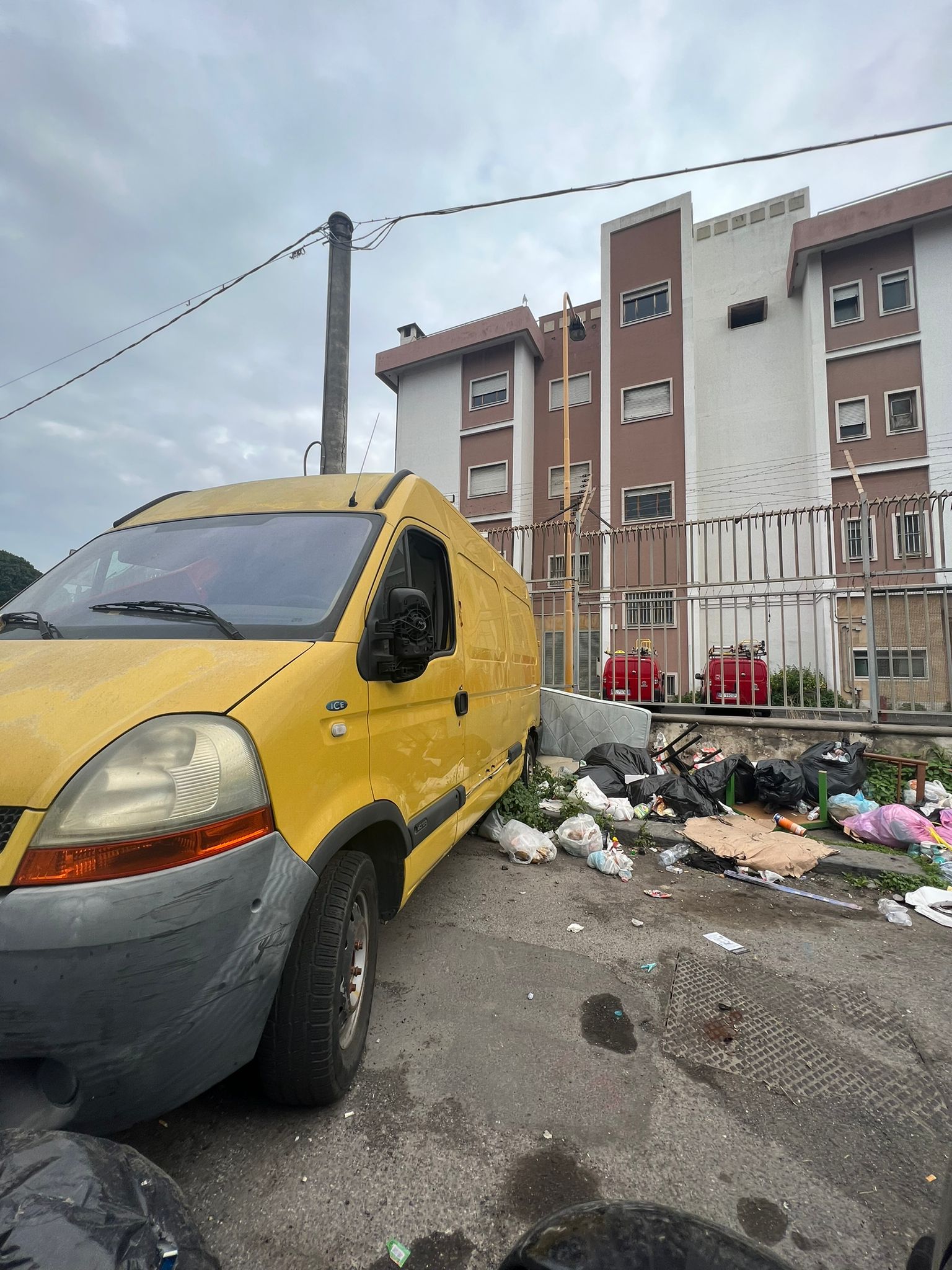 Oltre a essere tutto smontato, sicure aperte, portellone dietro scassato, adesso è anche punto di richiamo per i rifiuti che essendo un furgone alto è facile buttare i rifiuti dietro di esso.