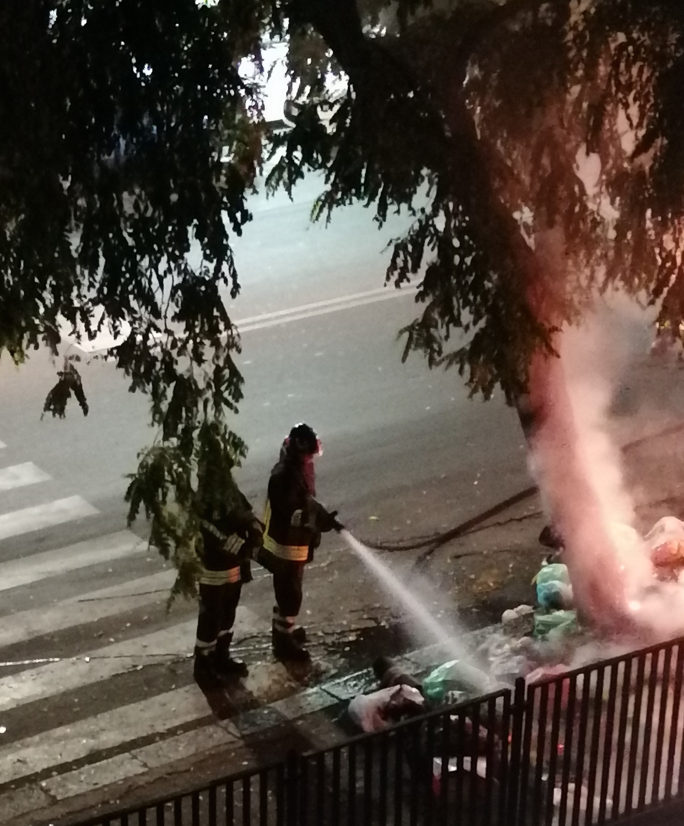 Dopo giorni di cumuli di rifiuti accatastati, in attesa di essere raccolti, nella nottata qualche imbecille gli ha dato fuoco, così da necessitare l'intervento dei vigili del fuoco.