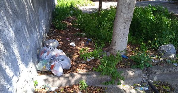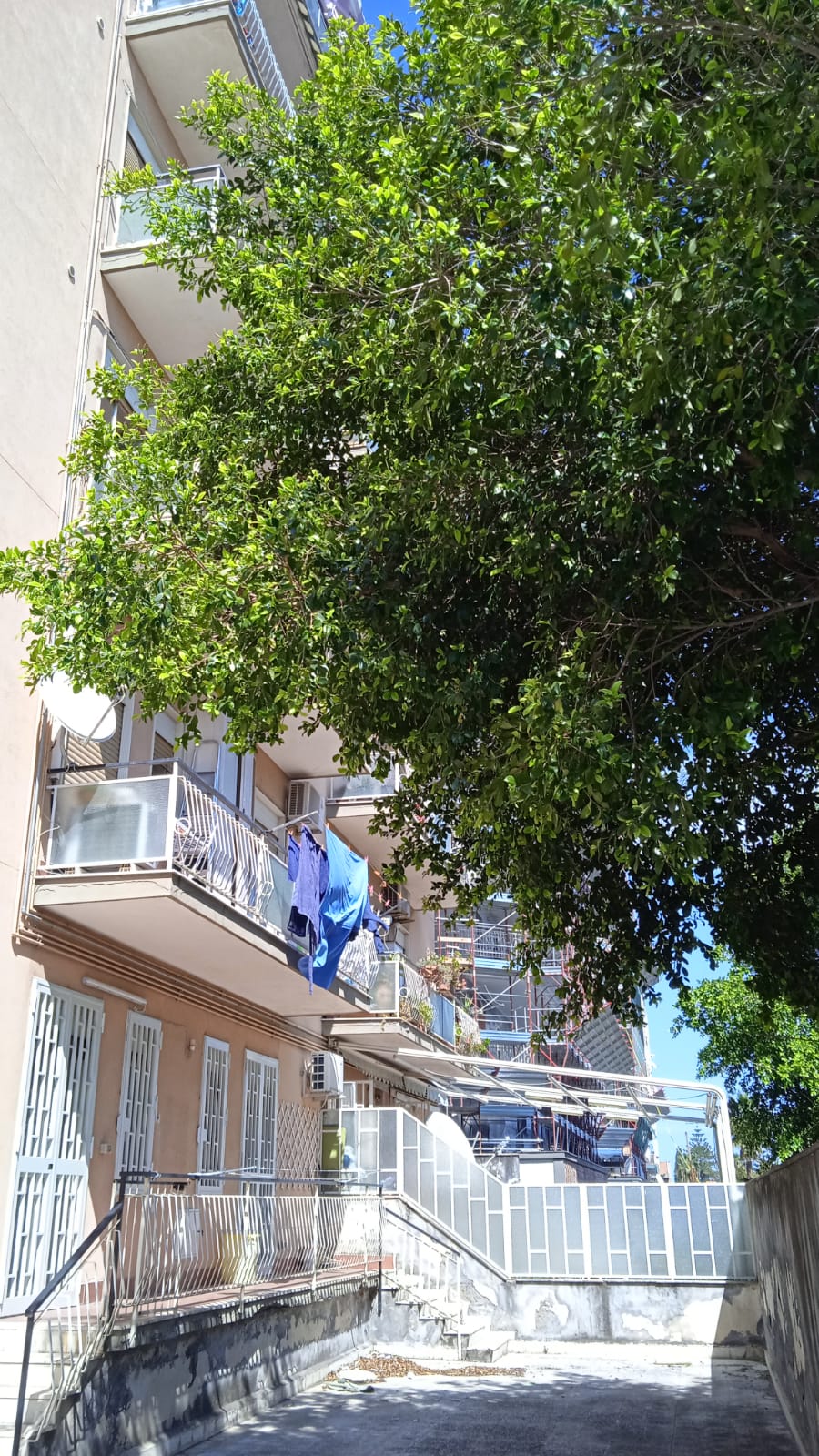 Via Monti Sicani 6 comune Tremestieri Etneo (Canalicchio), aiuole usate come discarica e alberi non potati da 6 anni con i rami che arrivano sui ballatoi.
