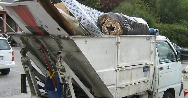 Camioncino perde rifiuto per strada, motociclista rischia di rovinare in strada