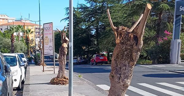 Via San Marco Tremestieri Etneo. Manutenzione verde pubblico potatura alberi uguale decapitare