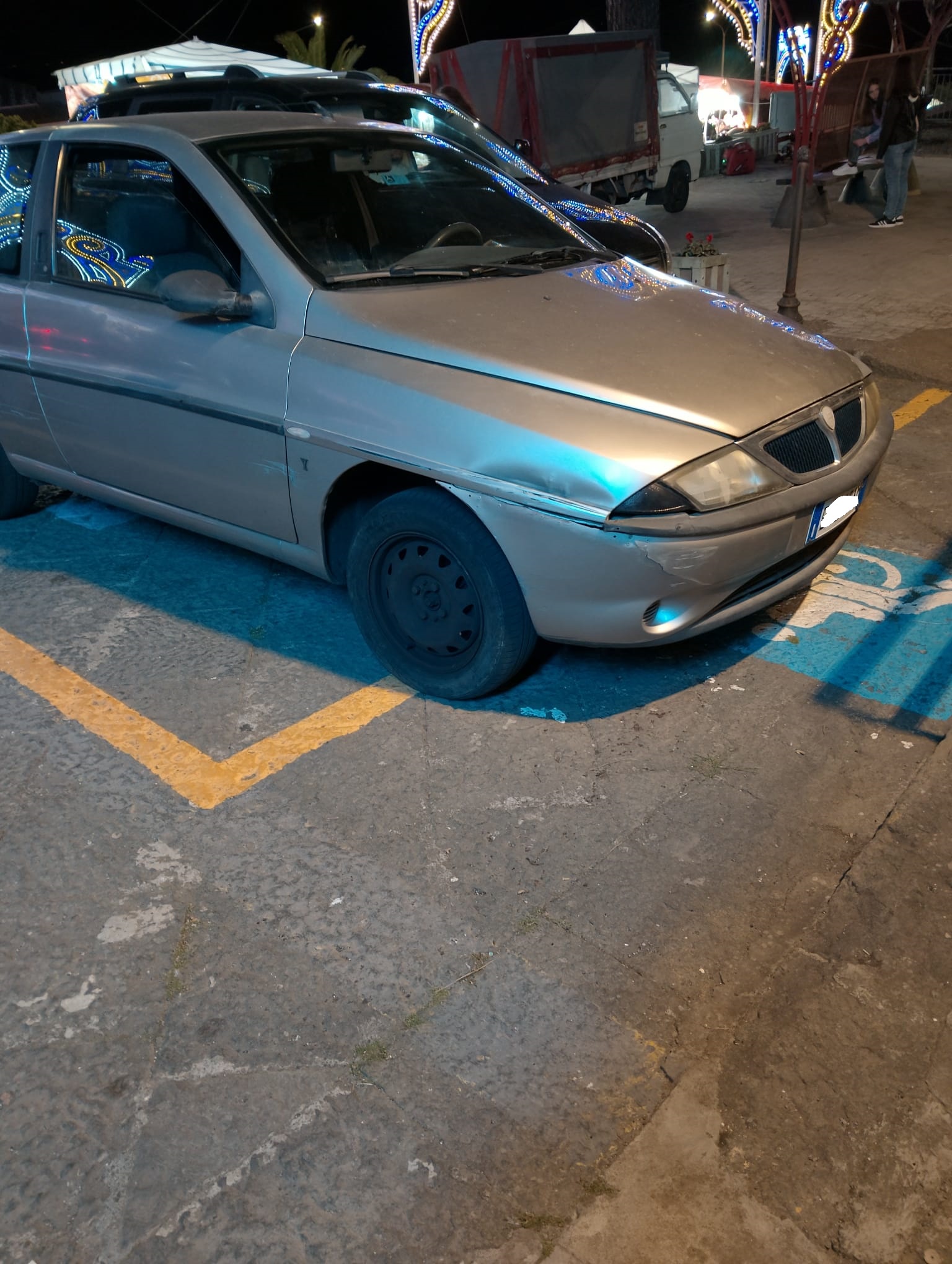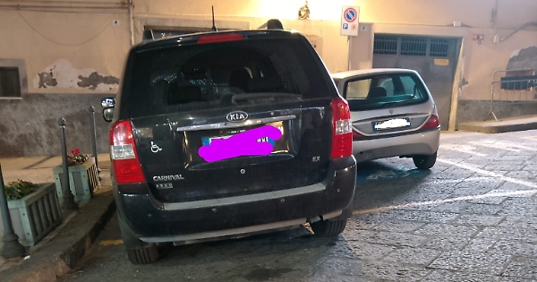 La sera del 4 Maggio vado nel comune di Sant' Alfio a vara, per le celebrazioni dei tre santi. Premetto di essere un invalido con tanto di contrassegno per disabili, quindi mi accingevo a cercare un posto per parcare la mia auto, ma con mia somma sorpresa noto quanto in foto meglio indicato, cioè una vettura con adesivo di contrassegno per disabili, applicato nel posteriore della vettura ed accanto un'altra autovettura, parcata irregolarmente senza alcun titolo nel posto dei disabili.