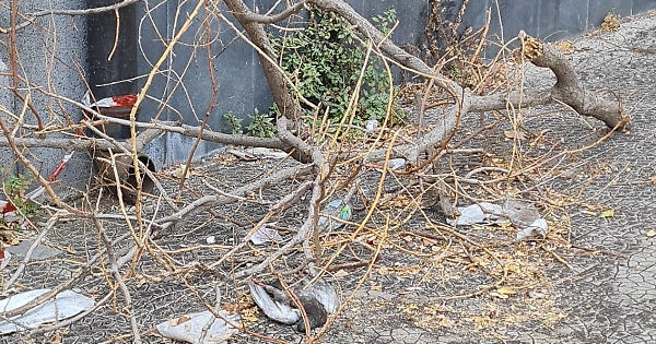 "Da almeno due settimane un grosso ramo spezzato sta sul marciapiede del viale Mario Rapisardi nei pressi della casa di cura Mater Dei, dal lato opposto rispetto al Teatro Don Bosco. Tra i rami secchi un piccione morto e spazzatura"