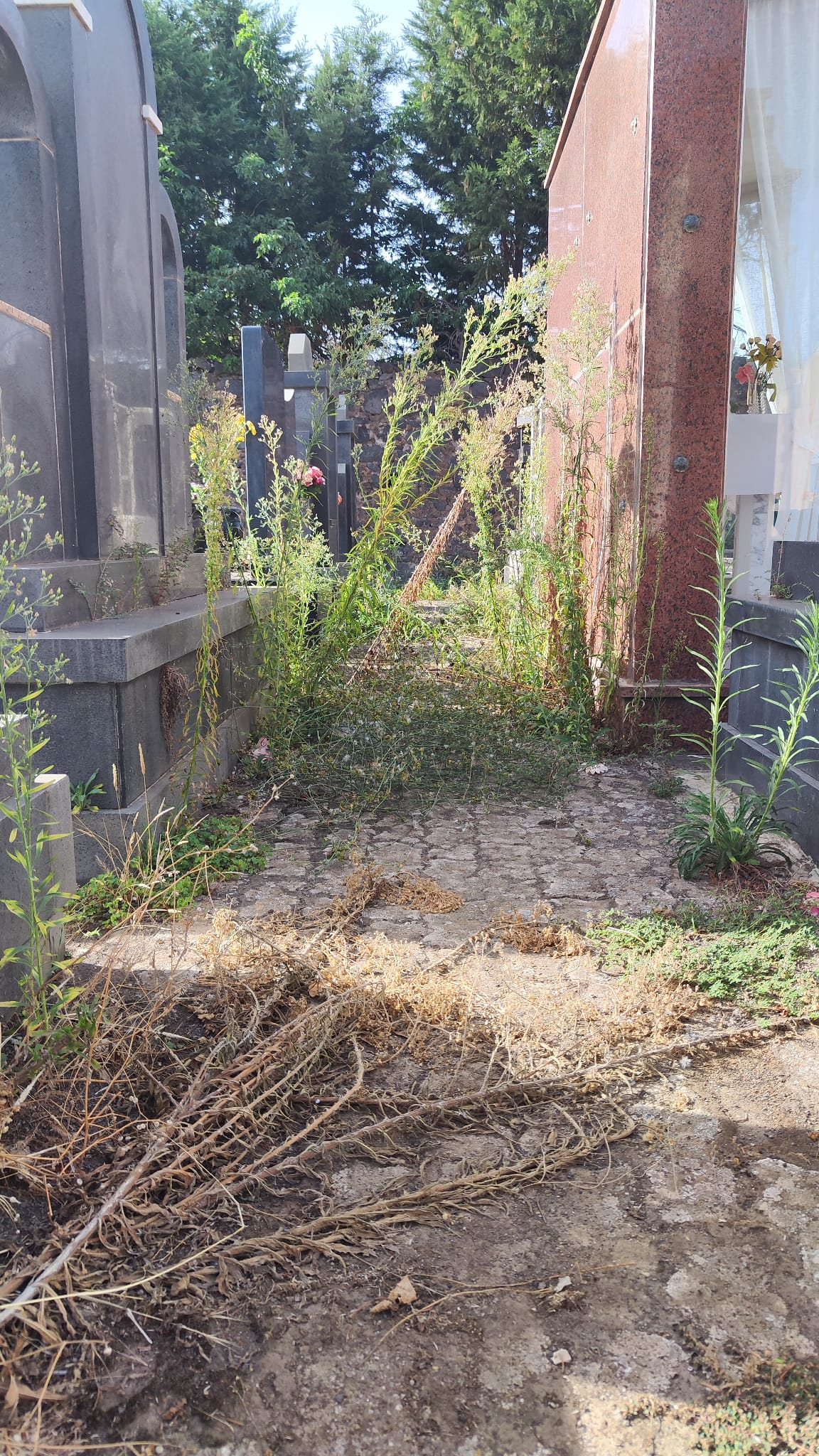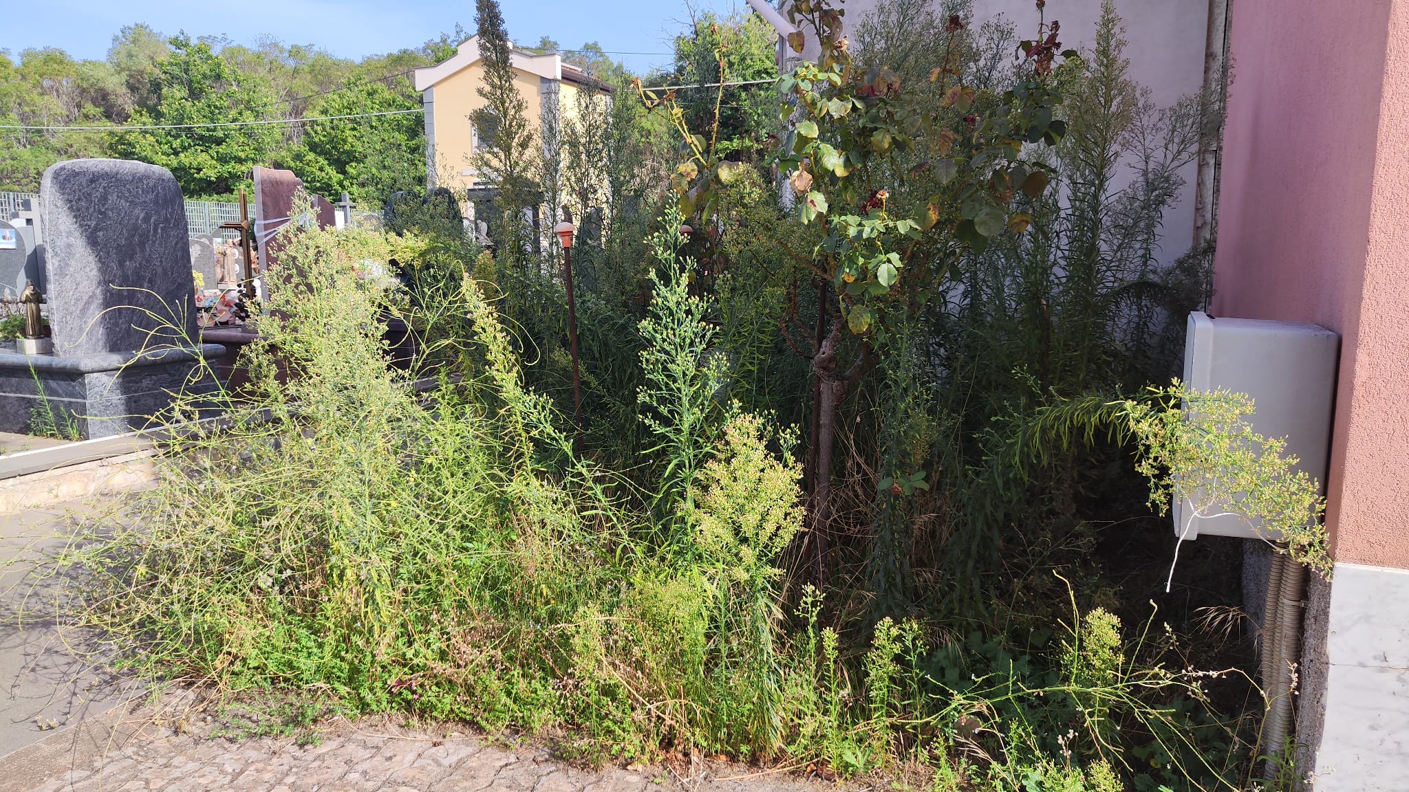 Le erbacce e i cespugli crescono indisturbati, superando in altezza le lapidi marmoree, rendendo il luogo del riposo eterno praticamente irriconoscibile