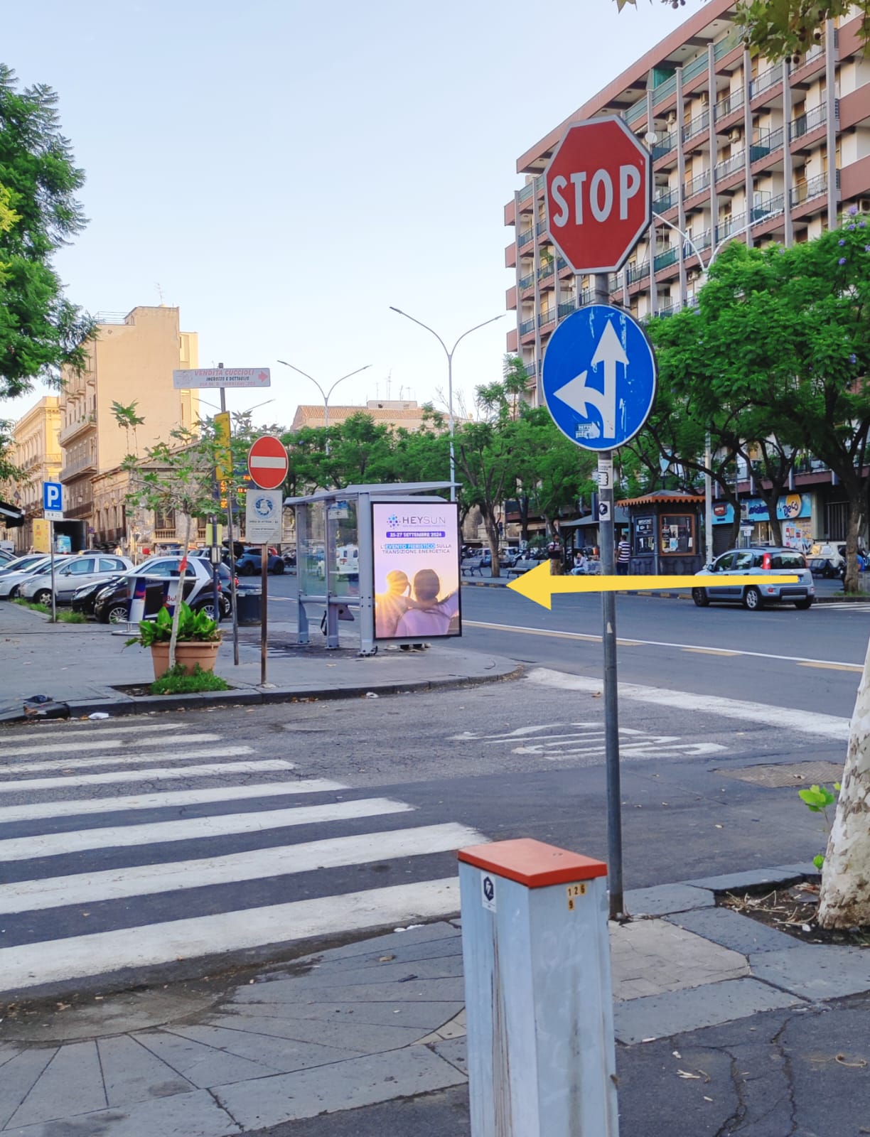 "Da rimproverare alla nuova pensilina bus di piazza Cavour sud salvo la temperatura tropicale al di sotto del tettuccio trasparente, ma la cosa più pericolosa è la presenza di un maxischermo pubblicitario che oscura la visuale agli automobilisti provenienti da ovest e che devono rispettare lo Stop verso via Etnea.