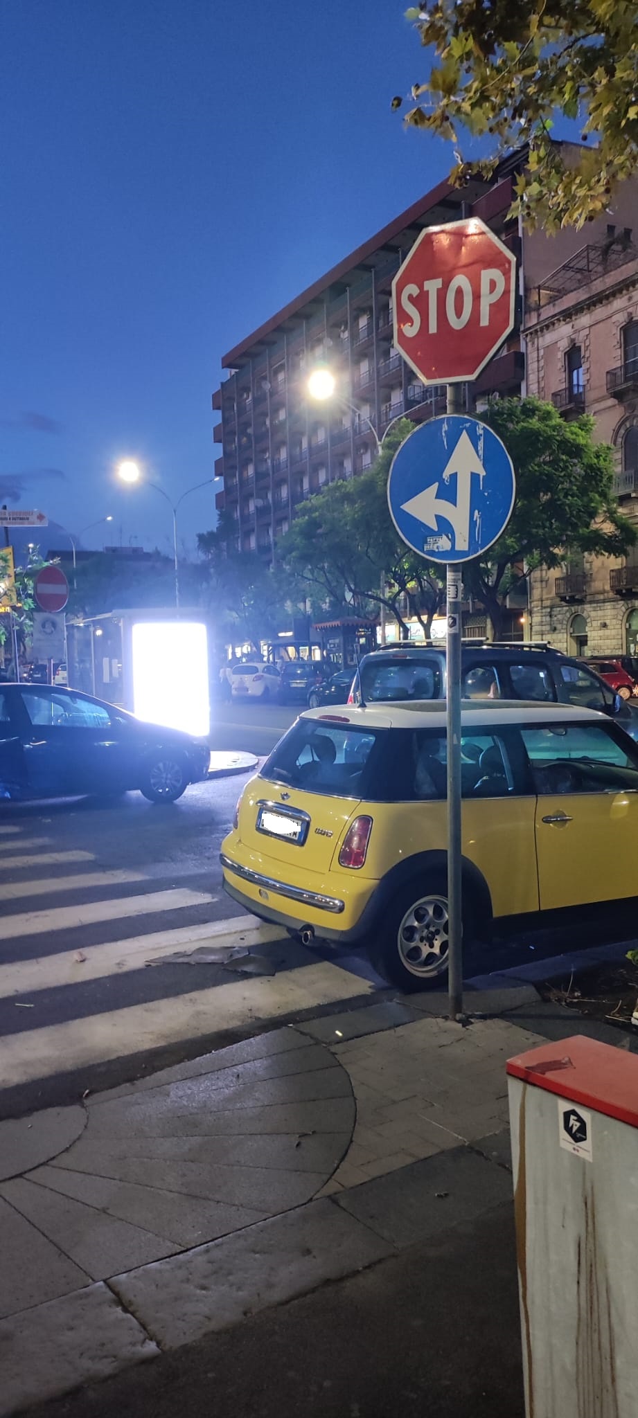 Analogamente chi scende da via Etnea ha la visuale impedita su chi per rispettare lo stop è costretto ad affacciarsi pericolosamente oltre lo Stop.