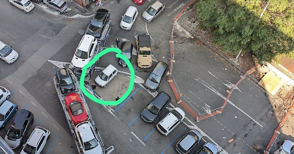 Davide contro Golia: piccola auto parcheggiata blocca la bisarca e tutte le auto e i bus dietro…