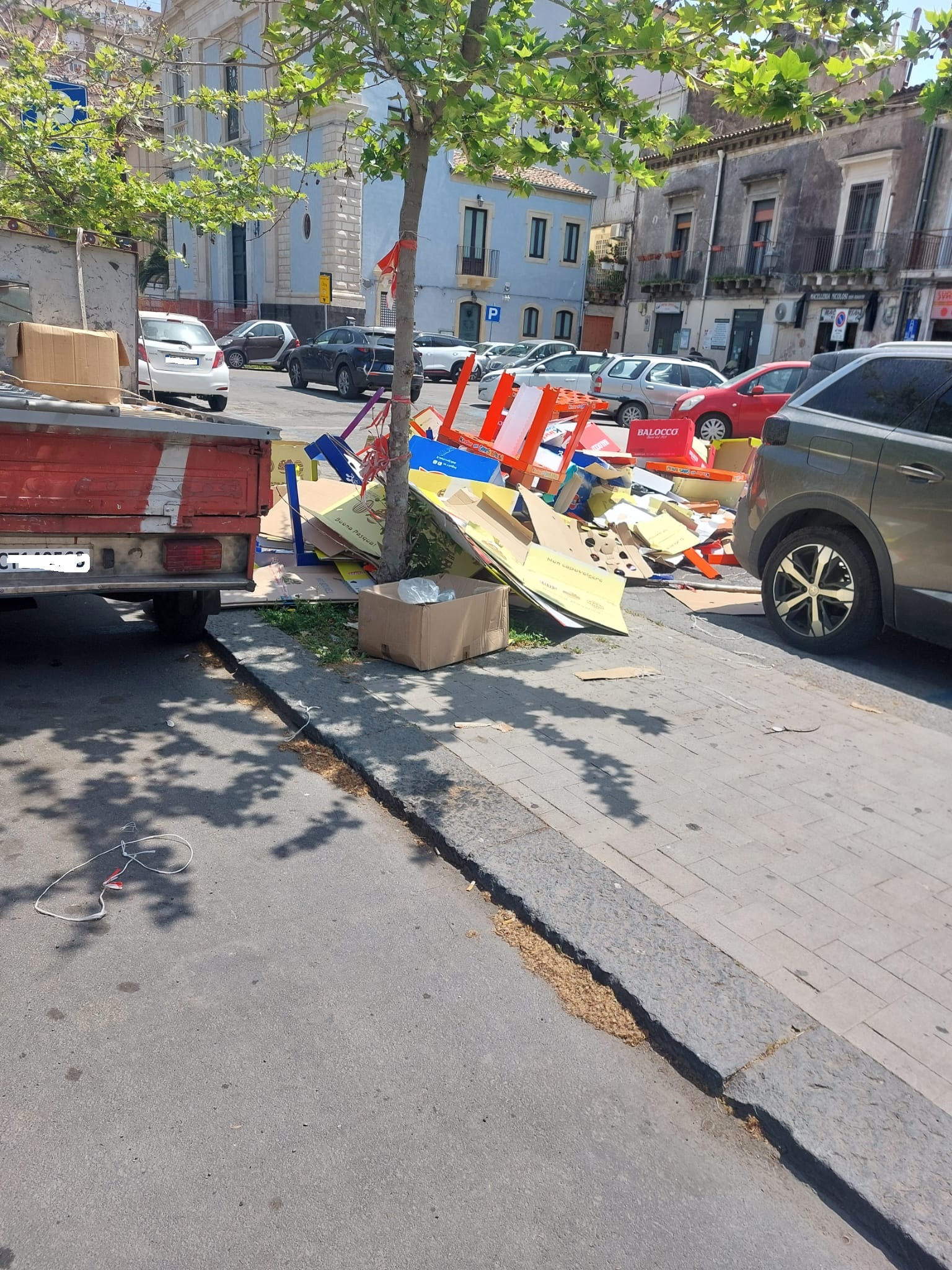 Catania, Piazza Cavour. Ecco come viene lasciato il suolo pubblico. Passano gli addetti, passano chi dovrebbe controllare ma rimane tutto com'è.