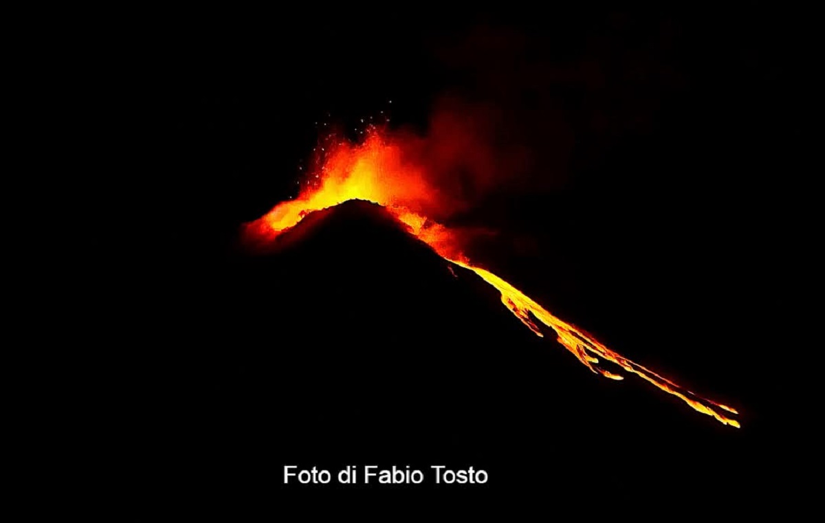 Uno scatto di Fabio Tosto dal balcone di casa a Gravina di Catania: eruzione dal cratere di Sud Est