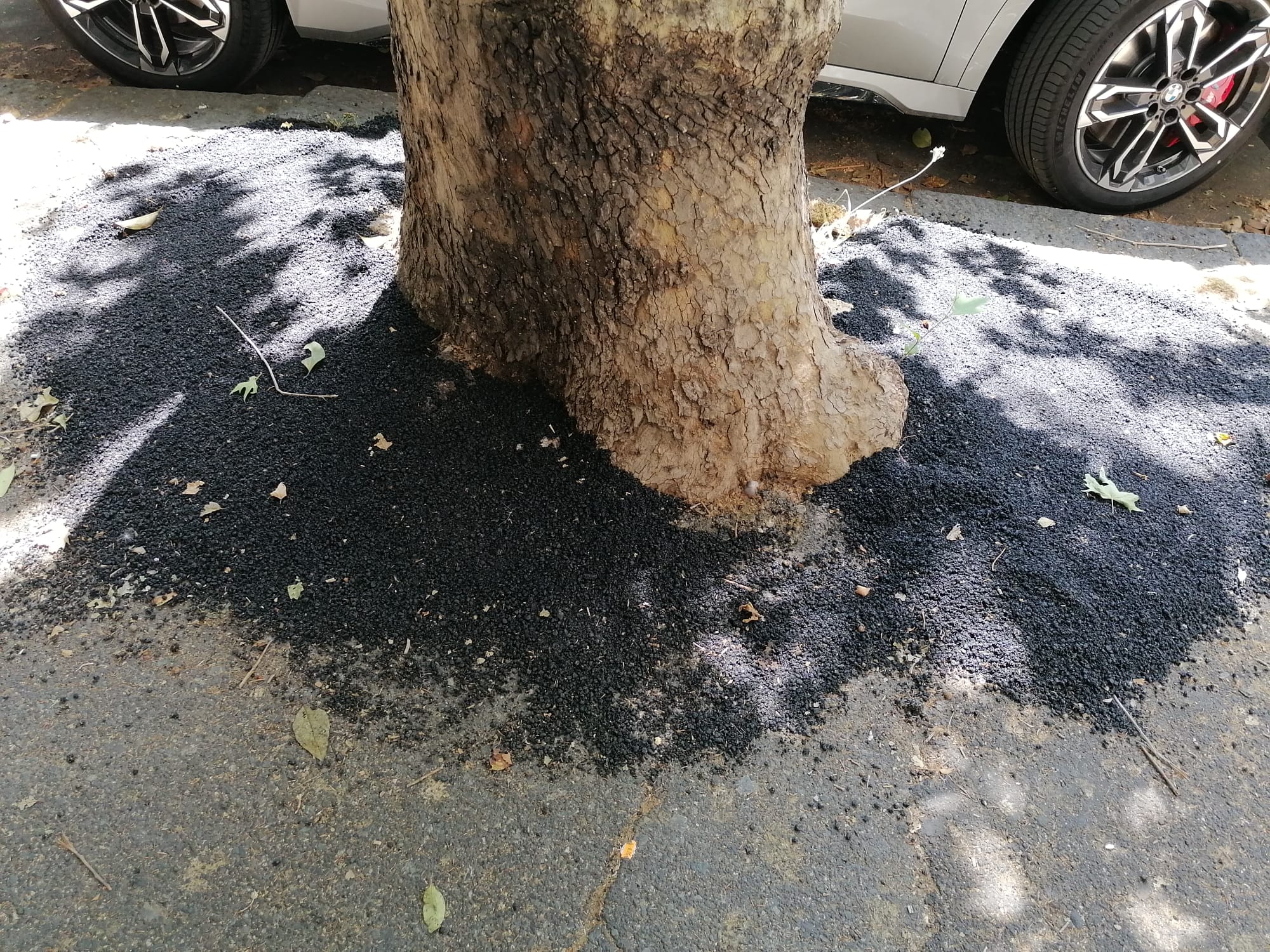 In via Androne alcuni scienziati, secondo me, hanno trovato la soluzione ai loro problemi che non si capisce quali siano mettendo il catrame attorno al povero albero. Qualcuno potrebbe svelare l'atroce mistero?