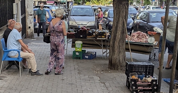 Sul marciapiede? Dimenticatelo. C’è una bancarella piazzata davanti a un passo carrabile, che blocca completamente la visuale a chi esce con l’auto. E se per caso un pedone volesse passare, dovrebbe prima schivare la bancarella e poi superare le auto parcheggiate comodamente sul marciapiede.