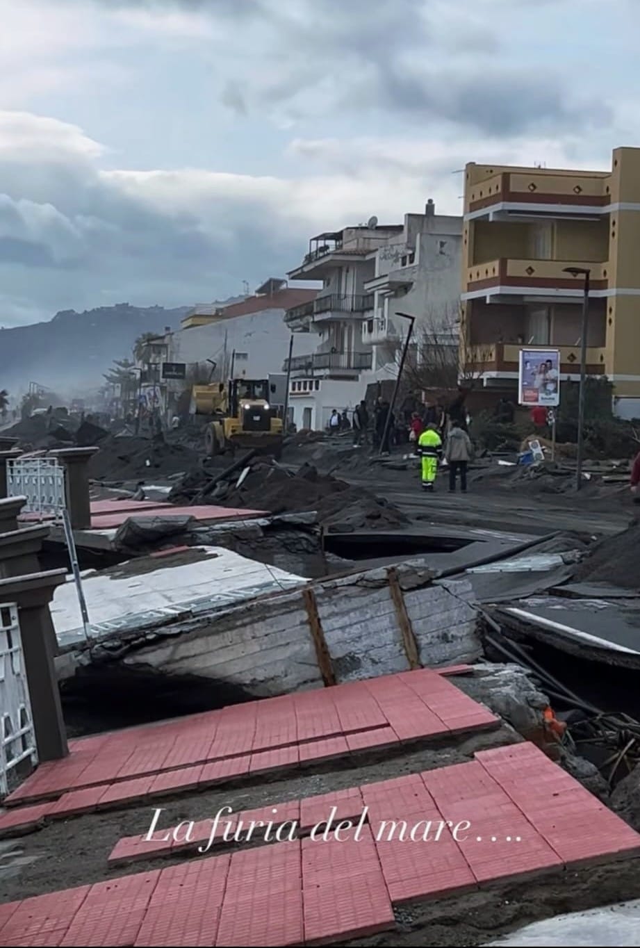 Del lungomare di Furci Siculo rimane il ricordo di un gioiello che era tornato a risplendere dopo un recente restyling. Un kilometro di bellezza caratterizzato dal rosso della pavimentazione in marmette cementizie, dallo scenografico svettante filare di palme washingtonie, dalla graziosa ringhiera modulare in ferro alternata a pilastrini in muratura, dalle dotazioni di panchine, cestini porta rifiuti differenziati, pali di illuminazione a led di buon design. Tutto questo, che si componeva piacevolmente e dava una immagine di qualità estetica e di efficiente manutenzione, oggi è ridotto in ammasso di macerie, un groviglio di tubazioni e cavi di sottoservizi scoperchiati, frammisti a spezzoni di massetti cementizi e asfalto, montagne di detriti, sabbia e pietrame. Uno scempio!