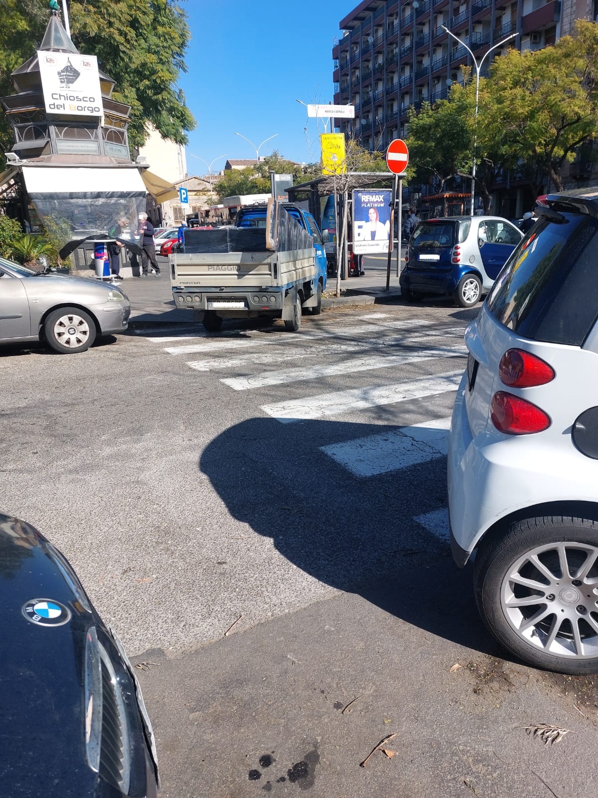 Si segnala la presenza frequente di autovetture posteggiate direttamente sulle strisce pedonali, in prossimità dell’attraversamento. Tale comportamento impedisce il regolare e sicuro transito dei pedoni, costringendo persone, anziani e soprattutto cittadini con disabilità o con passeggini a scendere sulla carreggiata, con evidente pericolo per la propria incolumità.