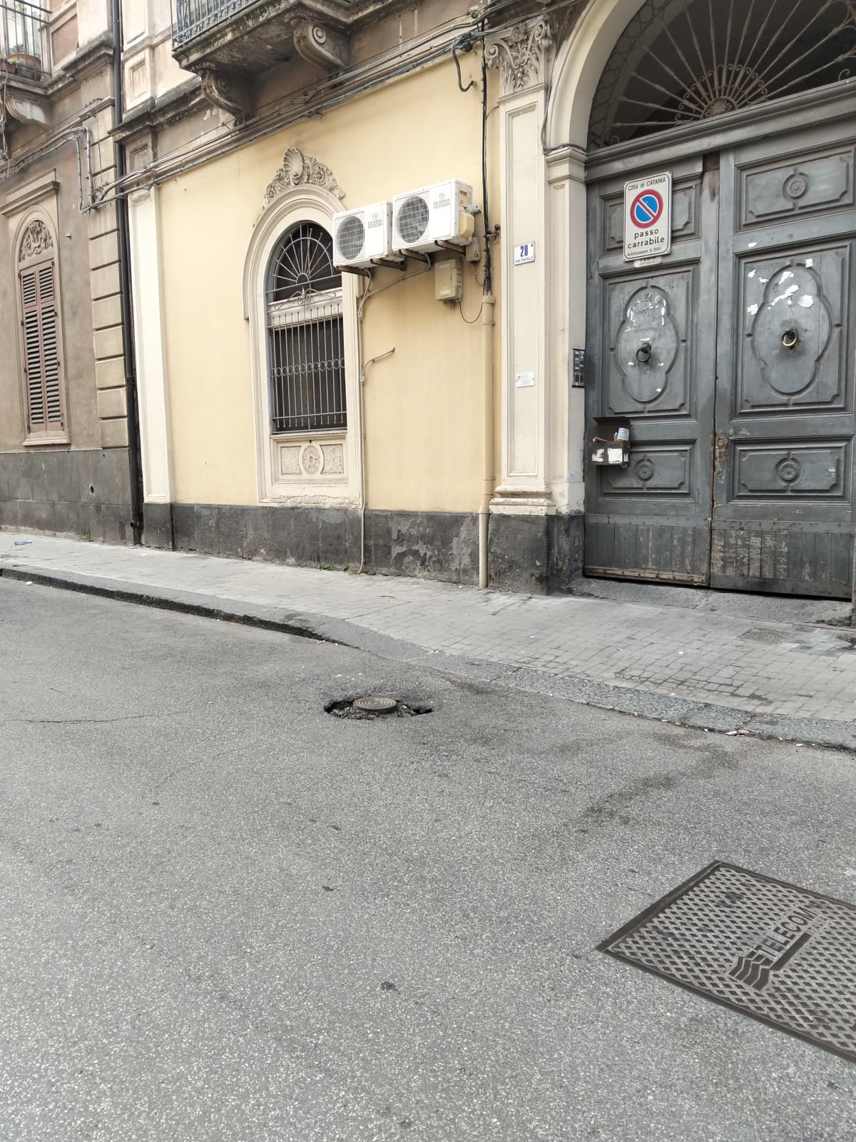 In via Papale 28, a Catania, si segnala un dissesto del manto stradale: una buca che va sempre più allargandosi, con asfalto divelto e detriti, rende pericoloso il transito sia per le auto che per i mezzi a due ruote. La presenza di un tombino parzialmente scoperto aumenta ulteriormente il rischio di incidenti. Si richiede un intervento urgente di messa in sicurezza.