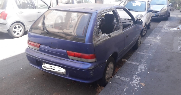 Giace da tempo in v. VICENZA bassa (MD), aperta piena di monnezza e ratti notturni.