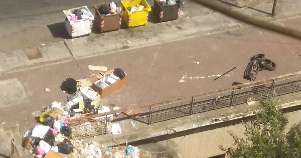 Discarica in viale Moncada 19, sopra il cantiere Spina verde e pista ciclabile e non è la prima volta. Il comune deve spostare dal ponte i cassonetti. In quel punto passa la canalina fibra della telecom