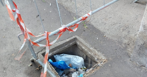 Catania: ancora pericolante il tombino davanti l'autoparco comunale
