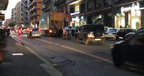 Ogni giorno scarico merci in via D’Annunzio con il camion in terza fila. Passeggeri in attesa degli autobus in strada. Ma le sanzioni al codice della strada solo per il cittadino...