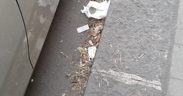 Sporcizia perenne lungo i marciapiedi di Via Quieta a Catania