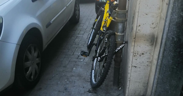 Un povero pedone per percorrere il marciapiede che fa...vola? Siamo in via ingegnere