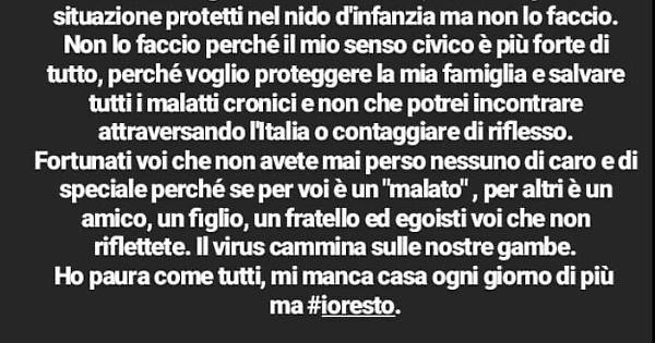 Messaggio di una studentessa siciliana che è rimasta a Milano