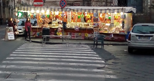 Come ogni anno la città è deturpata da oscene bancarelle in pieno centro storico. Un clamoroso esempio nella foto allegata. Il Sig. Sindaco in quale città vive se non si accorge di un simile scempio ?