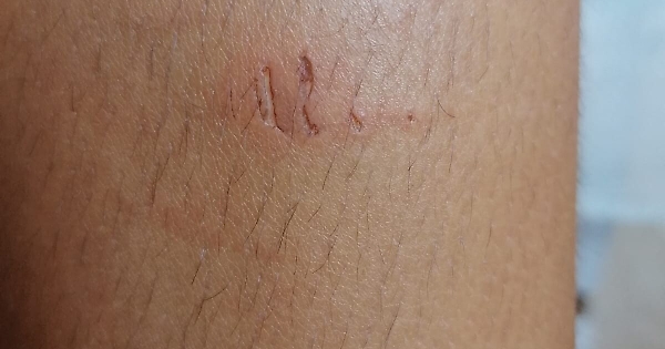 Mia figlia Noemi, 12 anni, nel mare di Fondachello è stata morsa alla gamba. Dal segno lasciato dai denti sembra un morso di cucciolo di barracuda (?).