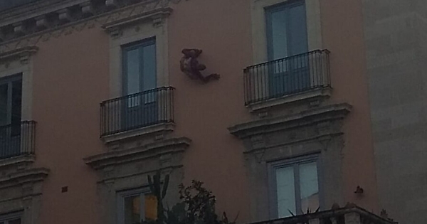 Catania come Hollywood... Set di riprese cinematografiche del film "Spider Man". A Catania abbiamo l'uomo ragno "allippatu" su una della facciate storiche più belle di Piazza Mazzini in pieno centro. È lì da anni e nessuno se ne è mai occupato. Dove è la sovrintendenza ai beni culturali che tanto fa per gli edifici storici?