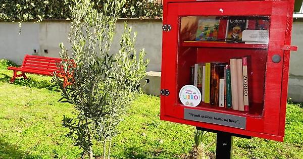 Una cassetta pubblica con dei libri, un'aiuola, un albero di ulivo, una panchina rossa. Tanti bei simboli in una sola foto. Tutto questo grazie ai cittadini attivi che si adoperano per un futuro migliore. Si trova in Via Giuseppe di Vittorio 8, Piano Tavola - Belpasso.