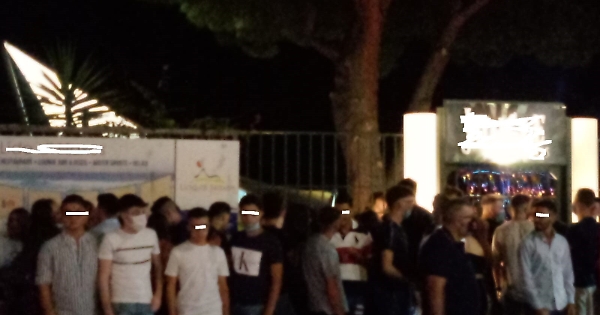 10 agosto, San Lorenzo: assembramento di giovani inconsapevoli del pericolo diffusione. Nonostante la presenza dei bodyguard della discoteca che non fanno nulla per organizzare e distanziarli.
