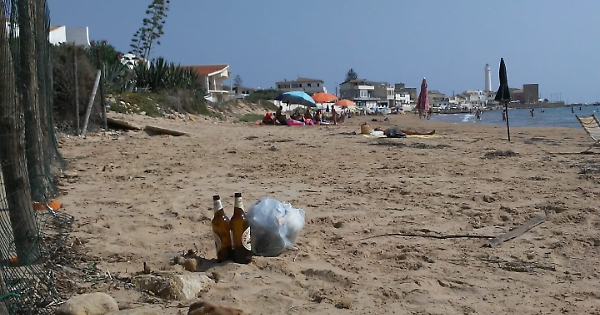 20 settembre 2020. Il comune di Santa Croce Camerina, le cui competenze in materia turistica non sono in discussione..., ha già tolto dalla spiaggia i contenitori della differenziata e le docce. Risultato la famosa spiaggia di Montalbano, vedere faro sullo sfondo, è sporca di rifiuti lasciati dai soliti ed impuniti incivili. Bene, bravi, bis.