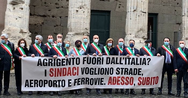 ROMA - "Agrigento non è fuori dall’Italia": questo lo slogan utilizzato dai sindaci di 25 comuni della provincia che questa mattina a Roma, davanti a Palazzo Chigi, hanno attuato un sit-in di protesta contro l’esclusione dal Recovery plan di interventi infrastrutturali sul loro territorio. Tra i progetti sui quali si puntava c'era anche il completamento dell’anello autostradale attraverso la realizzazione del tratto Gela-Castelvetrano. «Vogliamo adesso e subito impegni su strade, sull'adeguamento della rete ferroviaria e su un aeroporto che ci permetta finalmente di superare una distanza ormai inaccettabile dagli scali siciliani principali» hanno sostenuto i sindaci. "Una protesta - ha aggiunto Francesca Valenti, prima cittadina di Sciacca - che abbiamo organizzato anche per ricordare al governo centrale il nostro ruolo di unici destinatari del malcontento delle nostre popolazioni, alle prese (anche per colpa del covid) con una crisi sociale ed economica gravissima di cui non possiamo certamente essere noi, a capo di enti locali in gravi difficoltà economiche e di disponibilità di risorse umane ridottissime, i responsabili».