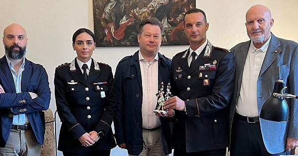 “Pinocchio tra due carabinieri”, è la statuetta, realizzata dal ceramista saccense Antonio Carlino, che è stata donata al comandante provinciale dell’Arma Carabinieri, col. Nicola De Tullio, nel corso di un incontro con una rappresentanza di Confartigianato Imprese Agrigento. Un dono in segno di vicinanza all’Istituzione e a testimonianza del valore della manualità artigianale degli iscritti a Confartigianato. Si tratta di una statuetta in ceramica, fatta e decorata a mano, unica nel suo genere, pensata appositamente dal ceramista che ha preso spunto per la sua creazione dal popolare libro di Carlo Collodi. All’incontro con il comandante provinciale dell’Arma, presente il comandante della Compagnia Carabinieri di Agrigento, capitano Annamaria Putortì, hanno preso parte il presidente e il segretario di Confartigianato Imprese, Gianofrio Pagliarulo e Vincenzo Insalaco e il presidente provinciale Anap, (Associazione nazionale pensionati che fa capo a Confartigianato Imprese) Franco Messina. Il presidente provinciale, Gianofrio Pagliarulo durante l’incontro ha voluto rimarcare l’importanza della presenza dei Carabinieri, da sempre presidio di sicurezza sul territorio, fondamentale per lo sviluppo sociale ed economico della provincia.