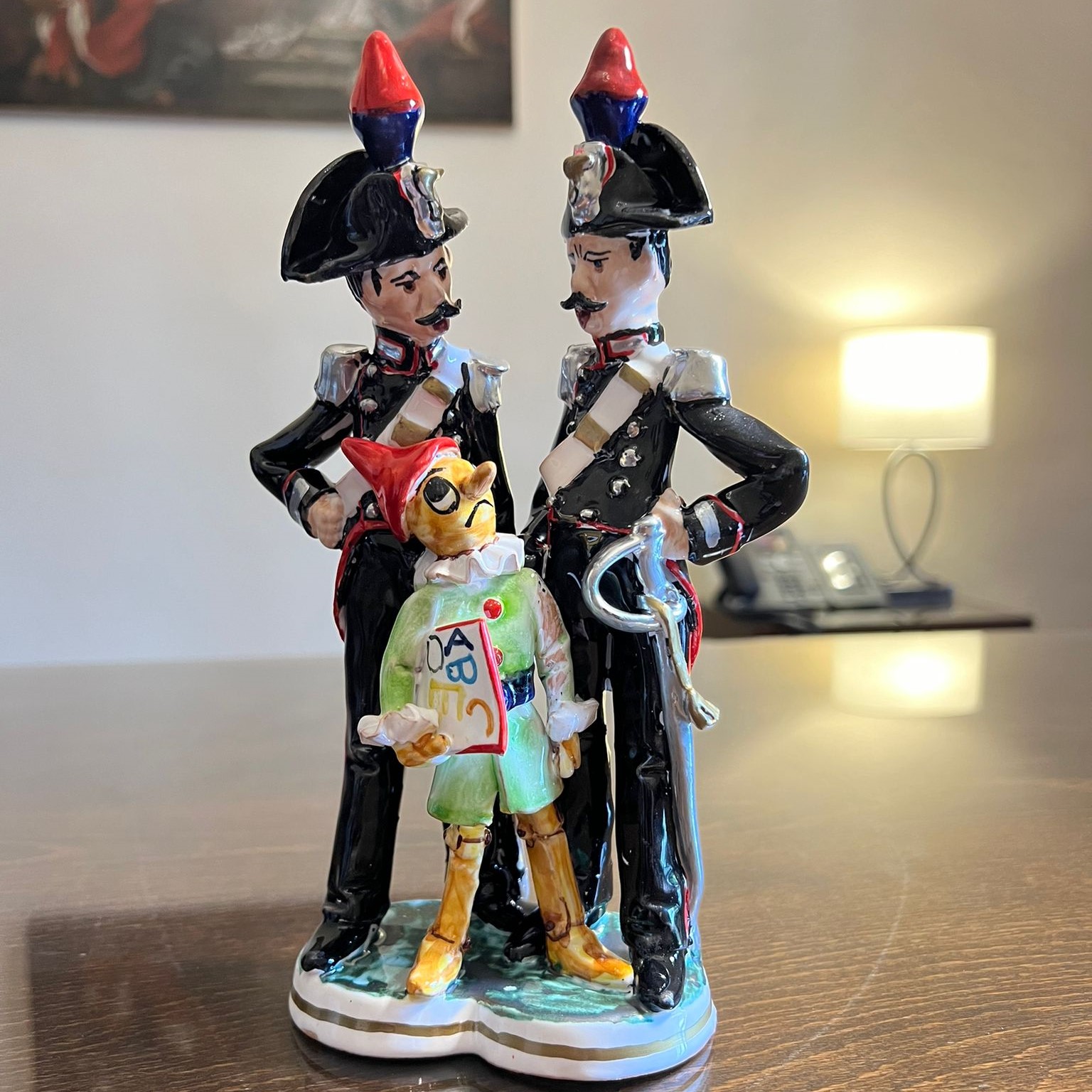 Donata una statuetta in ceramica, fatta e decorata a mano, dal titolo "Pinocchio tra due carabinieri"
